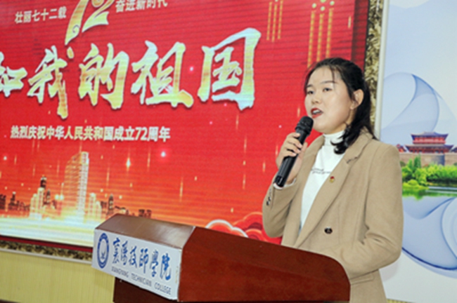 汽车营销专业学生献上了声情并茂的手语操表演,并邀请全场师生齐声合唱经典曲目“歌唱祖国”。
