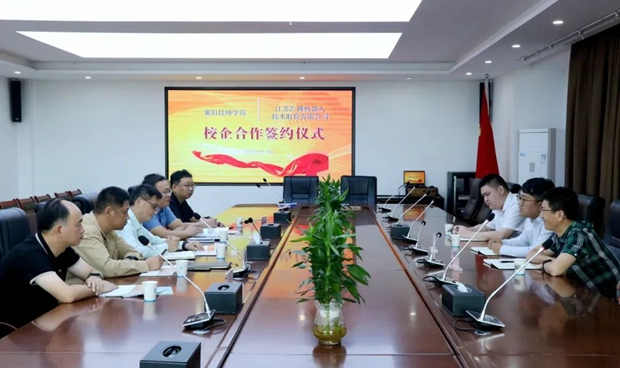 招生就业:0710-36225939月28日上午,学院与江苏汇博机器人技术股份有限公司校企合作签约仪式在创新楼三楼会议室举行。江苏汇博机器人技术股份有限公司副总裁段峰、总裁助理兼湖北直辖省区经理冯超、湖北客户经理吉利秋昊及我院副院长燕宏、实训中心主任廖建、智能制造学院党总支书记张几峰、主任杨明、相关部门负责人参加签约仪式。