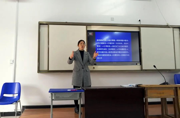 基础课部主任王天碧围绕“如何申报课题”进行专题培训。她从课题申报的流程、如何选题、如何组建团队、如何填写申报书、如何进行开题答辩、如何写结题报告、如何进行结题答辩等多方面进行了详尽阐述和细致讲解。她简要指出课题申报的一般流程,强调选题要从热点、痛点、焦点入手,从大处着眼,从小处着手去思考,并根据具体案例及自身参与课题答辩经历,重点阐述了如何组建团队、如何开题答辩、如何结题答辩等关键环节,还分享了自己以往课题申报及课题研究的经验,向老师们提出了诸多宝贵建议。