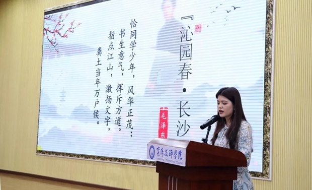 “恰同学少年,风华正茂,书生意气,挥斥方遒。”经典需要反复品读,经典需要用心感悟,在主持人的带领下,全体人员一起诵读了毛泽东的《沁园春·雪》的名句,一起感受经典带给大家的力量。