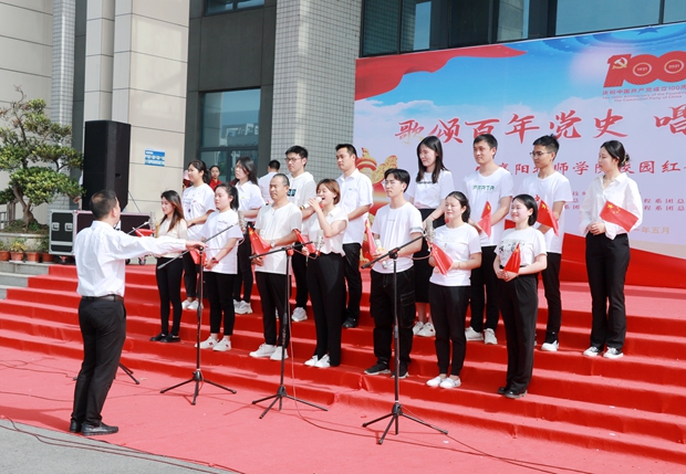 “我和我的祖国,一刻也不能分割”、“没有共产党,就没有新中国”、“一条大河,波浪宽......”。一首首红歌,记录一段段峥嵘岁月;一首首红歌,象征一面面光辉旗帜。或婉转抒情、或高亢有力、或深情表达,不一样的旋律,却表达着同样的感情。在激情澎湃的歌声中,师生们重温党的百年光辉历程,歌颂祖国的伟大成就!