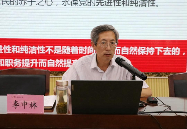 首先,李中林带领大家重温了习近平总书记在党史学习教育运动大会上发表的重要重要讲话精神。他指出,习近平总书记的重要讲话深刻阐述了开展党史学习教育的重大意义,深刻阐明了党史学习教育的重点和工作要求,对党史学习教育进行了全面动员和部署,为我们开展好党史学习教育指明了方向,提供了根本遵循。我们要认真学习习近平总书记重要重要讲话精神,准确把握目标任务、工作要求,切实增强责任感和使命感,用心用功学好党史这门“必修课”,努力在学习党史中砥砺初心、践行使命,担当实干,积极作为。接着,李中林从“学百年党史正当其时”、“必须树立正确的党史观”、“党的百年光辉历程及伟大贡献”、“在百年党史中汲取智慧和力量”、“做新时代合格党员”等五个方面,阐述了党史学习教育为何学?如何学?学什么?有什么启示?该怎么做的问题。他指出,开展党史学习教育,是牢记初心使命、推进中华民族伟大复兴历史伟业的必然要求;是坚定信仰信念、在新时代坚持和发展中国特色社会主义的必然要求;是推进党的自我革命、永葆党的生机活力的必然要求。我们学习党史,要增强历史自觉,做到学史明理;筑牢信仰之基,做到学史增信;传承红色基因,做到学史崇德;坚持学以致用,做到学史力行。我们学习党史,要坚持与时俱进、身体力行,紧密联系思想和工作实际,把发现问题、研究问题、解决问题作为出发点和落脚点,真正做到学以致用、用以促学、学用相长,努力把学到的知识、掌握的规律,切实转化为解决发展问题、应对风险挑战的能力,转化为锐意进取、担当实干的精气神,转化为看得见、摸得着的改革发展成果。树立正确党史观,不能仅仅停留于讲讲党史故事的层面,必须深刻理解故事背后的深刻逻辑,准确把握党的历史发展的主题主线、主流本质,从党的历史中汲取前进的智慧和力量,更要旗帜鲜明反对历史虚无主义。在党课上,李中林用丰富的故事、数据、图片,带领大家回顾了中国共产党百年光辉历程:开天辟地,中国共产党在新民主主义革命时期完成救国大业;改天换地,中国共产党在社会主义革命和建设时期完成兴国大业;翻天覆地,中国共产党在改革开放和社会主义现代化建设新时期推进富国大业;惊天动地,中国共产党在中国特色社会主义新时代推进并将在本世纪中叶实现强国大业。颂扬了中国共产党为国家、为人民、为民族、为世界作出的彪炳史册的伟大贡献。李中林要求,我们要从百年党史中汲取推进理论创新、进行理论创造的智慧和力量,汲取把握历史大势、善抓历史机遇的智慧和力量,汲取践行初心使命、赢得人民信任支持的智慧和力量,汲取不断总结经验、提升能力水平的智慧和力量,汲取不断构筑伟大精神、传承红色基因的智慧和力量,汲取旗帜鲜明讲政治、保证党的团结统一的智慧和力量。
