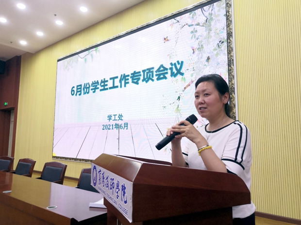 会上,学工处处长曾莉通报了5月份的学生工作。为更好地开展学生管理工作,她指出,要组织内容丰富、形式多样的学生活动,发挥学生的主观能动性;要给学生提供沟通和交流的平台,调动学生干部力量,打通学生诉求通道;要健全班级管理制度,培养集体荣誉感,做到规矩明确、奖罚分明。她强调,临近学期末,更要加强安全意识、责任意识、主动意识,绷紧校园安全的弦,站好最后一班岗,保障学生安全,确保校园平安!