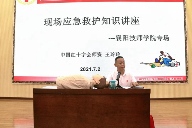 招生就业:0710-36225937月2日上午,襄阳市红十字会常务副会长李志宇带领市红十字会赈济救援队来到我院,为全院教职工进行了一场精彩的现场应急救护知识培训,全体教职工参加培训。活动由副院长彭铁山主持。