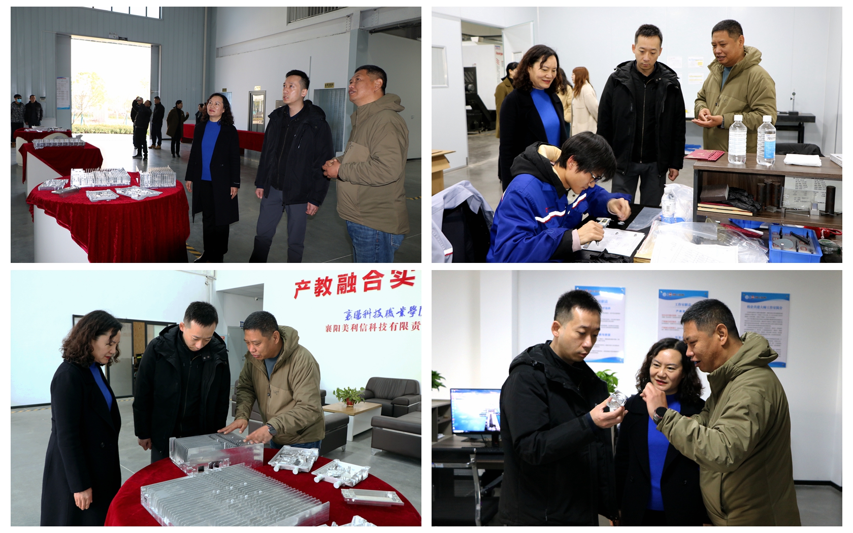 在襄阳市公共实训中心美利信机加工厂,胡诚一行驻足机器旁,仔细观察零件的加工流程,详细了解生产过程的每一个细节,还与现场的技术人员和师生交流操作要点。期间,还详细了解校企合作模式、企业的入驻条件以及校企双方在人才培养、技术研发等方面的合作机制。企业工作人员还介绍了校企协同科技攻关的具体案例。胡诚一行对我校校企合作成果给予高度评价,指出学校在推动产学研深度融合方面走在了前列,为职业教育与产业发展的无缝对接提供了优秀范例。